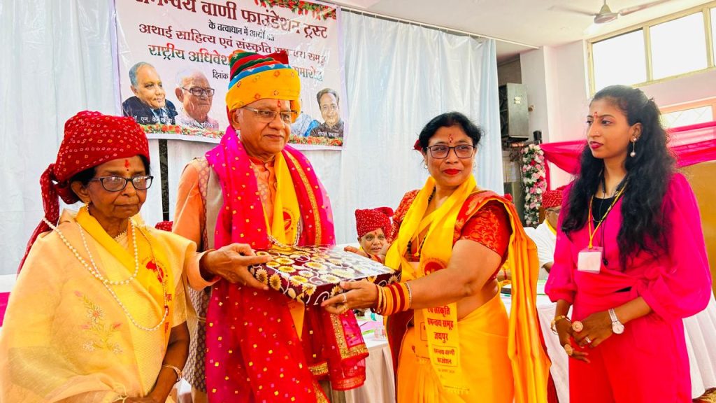 जयपुर (News Life)। संगठन की नवीन कार्यकारिणी में डॉ अखिल बंसल द्वारा श्रीमती सिद्धेश्वरी सराफ शीलू को राष्ट्रीय कार्यकारी अध्यक्ष नियुक्ति किया गया और जय श्री राम सेवा समिति के संस्थापक अध्यक्ष पं.संदेश महाराज एवं संरक्षिका श्रीमती सिद्धेश्वरी सराफ शीलू को समन्वय वाणी फाउंडेशन ट्रस्ट जयपुर अस्थाई साहित्य एवं संस्कृति समूह द्वारा सम्मानित किया गया। संचालन जबलपुर के राजेश पाठक के द्वारा कार्यक्रम संचालित किया गया उन्हे बुंदेलखंड गौरव सम्मान से सम्मानित किया गया जिसमें अस्थाई साहित्य एवं संस्कृति समूह जयपुर में सभी साहित्यकारों ने अपनी प्रस्तुति दी जिसमें श्रीमती सिद्धेश्वरी सराफ शीलू, पं.संदेश महाराज, साक्षी सराफ, श्रीमती पदमा तिवारी, श्रीमती शोभा मगेंद्र सिंह, डॉ आशा श्रीवास्तव ओजेंद्र तिवारी, श्रीमती मंजू शरद सोनी एवं जबलपुर से सभी साहित्यकार ने अपनी प्रस्तुति दी।
