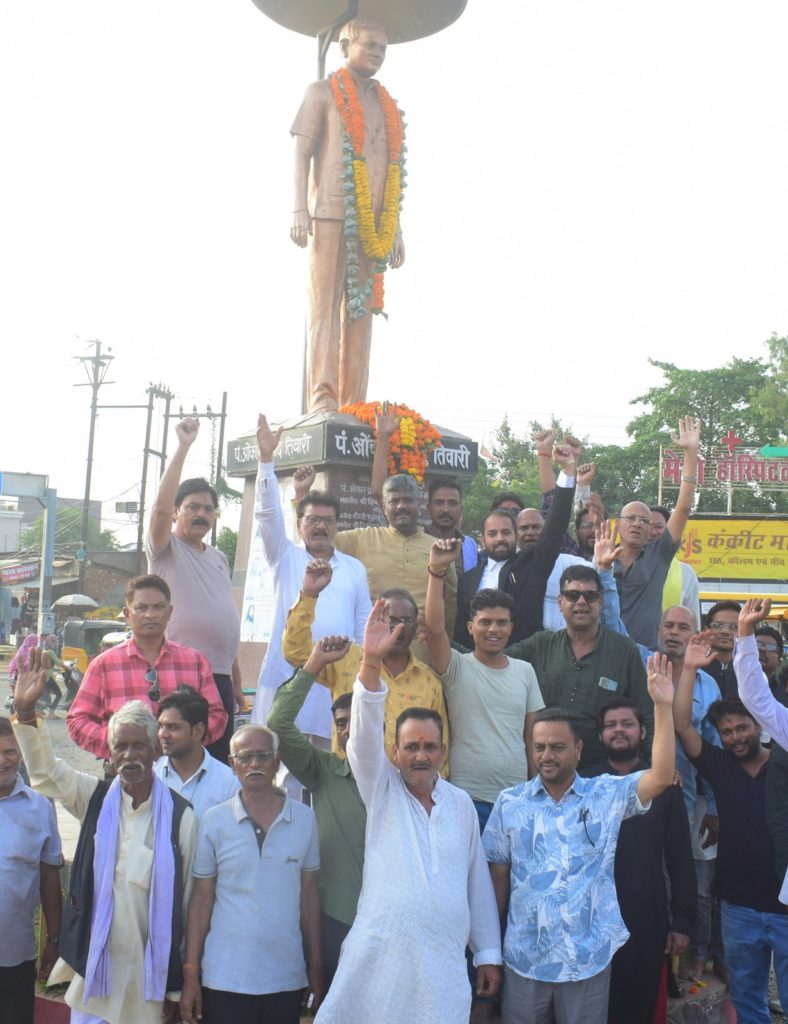 दमोहनाका चौराहे पर प्रतिमा के समक्ष हुई पुष्प वर्षा….